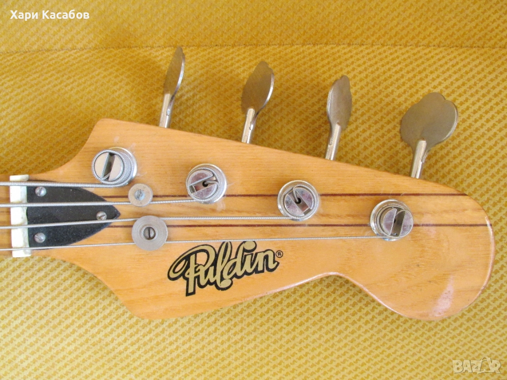 Продавам напълно реновирана бас китара Puldin, които навремето излизаха от пловдивския завод за износ. Обновяването на баса е дело на лютиера Стефан Кудев, който свали старата боя и я третира с различни мат лакове, за да се открои дървесната шарка на топа на тялото. Сложени са чисто нови адаптери PJ-конфигурация на EMG Geezer Butler със съпътстващата ги електроника и звукът е страхотен. Поставени са и ключове на Willkinson. Мисля, че се получи доста добър бас!