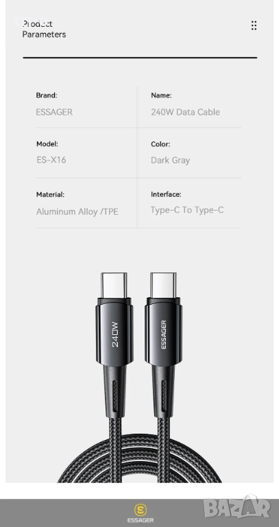 Essager 240W USB Type-C към C кабел PD бързо зареждане 6A бързо зарядно устройство USB C кабел, снимка 1 - Кабели и адаптери - 52499797 Essager 240W USB Type-C към C кабел PD бързо зареждане 6A бързо зарядно устройство USB C кабел, снимка 2 - Кабели и адаптери - 52499797 Essager 240W USB Type-C към C кабел PD бързо зареждане 6A бързо зарядно устройство USB C кабел, снимка 3 - Кабели и адаптери - 52499797 Essager 240W USB Type-C към C кабел PD бързо зареждане 6A бързо зарядно устройство USB C кабел, снимка 4 - Кабели и адаптери - 52499797 Essager 240W USB Type-C към C кабел PD бързо зареждане 6A бързо зарядно устройство USB C кабел, снимка 5 - Кабели и адаптери - 52499797 Essager 240W USB Type-C към C кабел PD бързо зареждане 6A бързо зарядно устройство USB C кабел, снимка 6 - Кабели и адаптери - 52499797 Essager 240W USB Type-C към C кабел PD бързо зареждане 6A бързо зарядно устройство USB C кабел, снимка 7 - Кабели и адаптери - 52499797 Essager 240W USB Type-C към C кабел PD бързо зареждане 6A бързо зарядно устройство USB C кабел, снимка 8 - Кабели и адаптери - 52499797 Essager 240W USB Type-C към C кабел PD бързо зареждане 6A бързо зарядно устройство USB C кабел, снимка 9 - Кабели и адаптери - 52499797 Essager 240W USB Type-C към C кабел PD бързо зареждане 6A бързо зарядно устройство USB C кабел, снимка 10 - Кабели и адаптери - 52499797 Essager 240W USB Type-C към C кабел PD бързо зареждане 6A бързо зарядно устройство USB C кабел, снимка 11 - Кабели и адаптери - 52499797 Essager 240W USB Type-C към C кабел PD бързо зареждане 6A бързо зарядно устройство USB C кабел, снимка 12 - Кабели и адаптери - 52499797 Essager 240W USB Type-C към C кабел PD бързо зареждане 6A бързо зарядно устройство USB C кабел, снимка 13 - Кабели и адаптери - 52499797 1/13