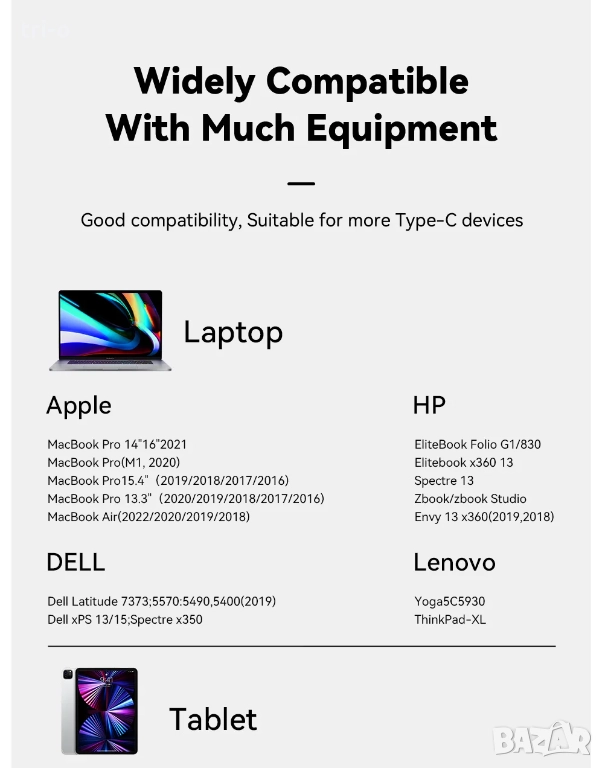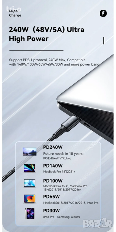 • Съвместим с множество устройства: Този кабел е съвместим с устройства MacBook Pro 2021, Xiaomi и Huawei, което го прави универсален вариант за всички ваши нужди от зареждане.