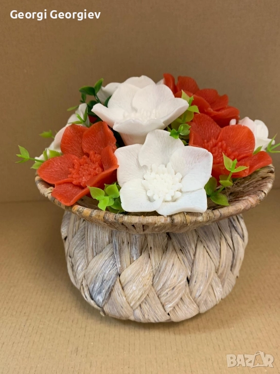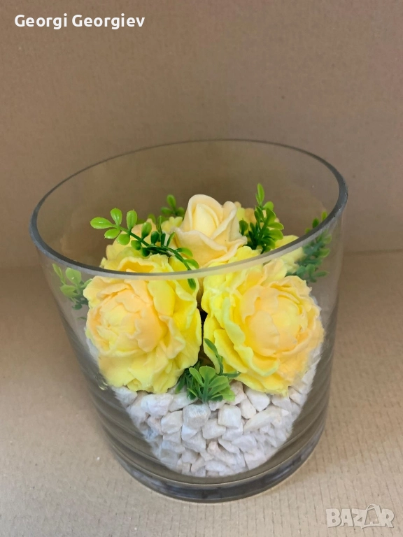 цветя изработени с глицеринов ароматен сапун и Българска роза Стара Загора,бивше кино Септември → Обява 52499822