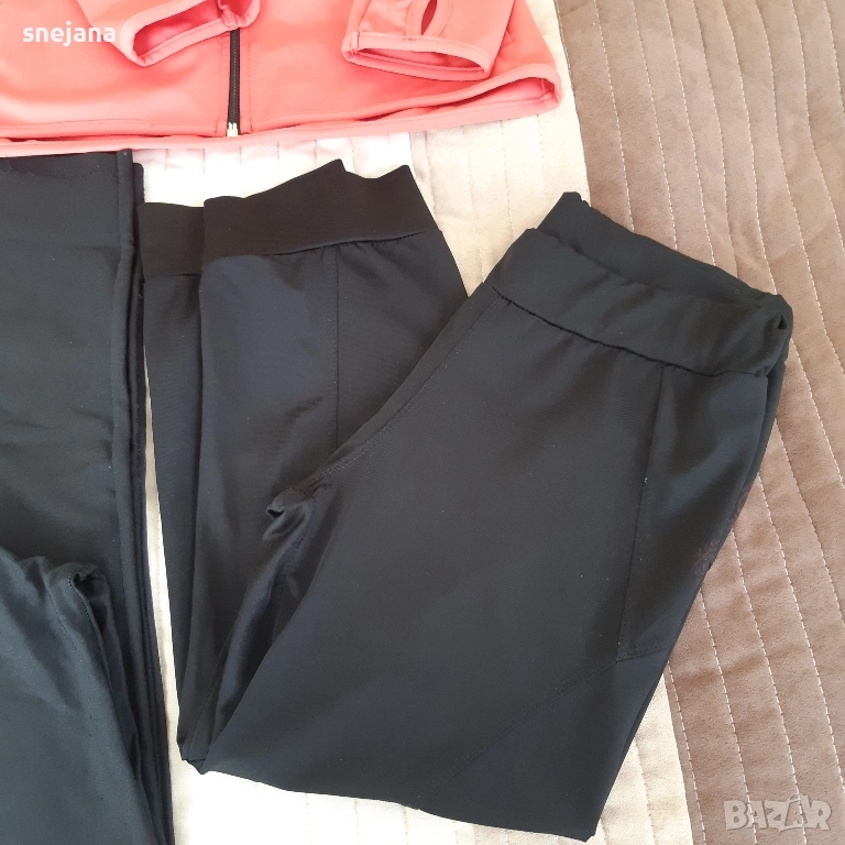 Дамски спортни дрехи в добро състояние, малки са на дъщерята и вече не се ползват, отговарят на дамско S .Цената е за всичко 3 клина и две горнища.Символична цена.