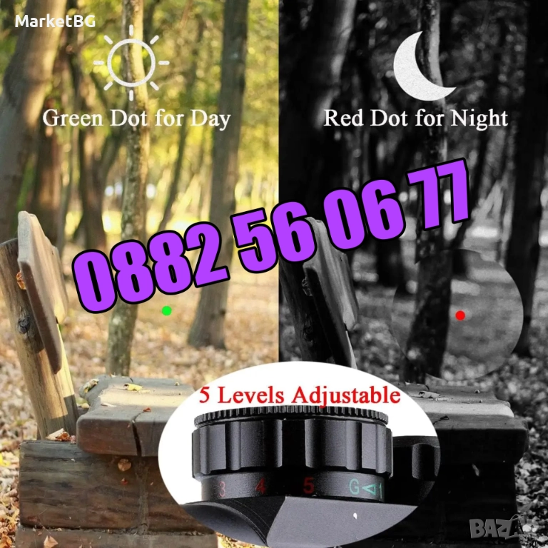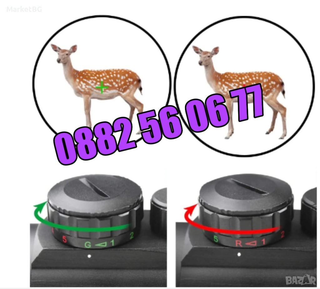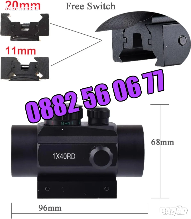 ЛАЗАРЕН ПРИЦЕЛ, мерник с червена и зелена точка, бързомер Bushnell 1x40mm.