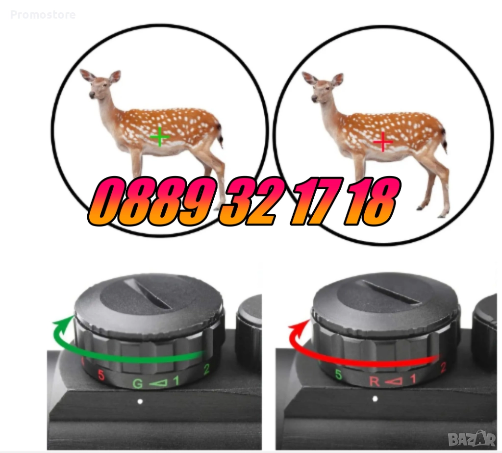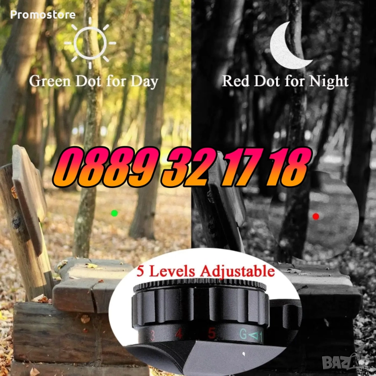 ЛАЗАРЕН ПРИЦЕЛ, мерник с червена и зелена точка, бързомер Bushnell 1x40mm.