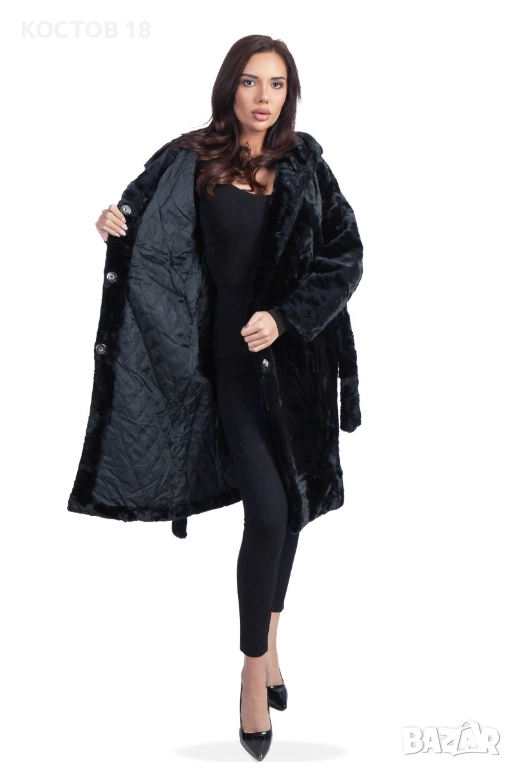 Перфектен избор за жени, които търсят стилно, модерно и топло дамско палто от еко кожа. Модела е 172 см висок -55 кг и носи размер S