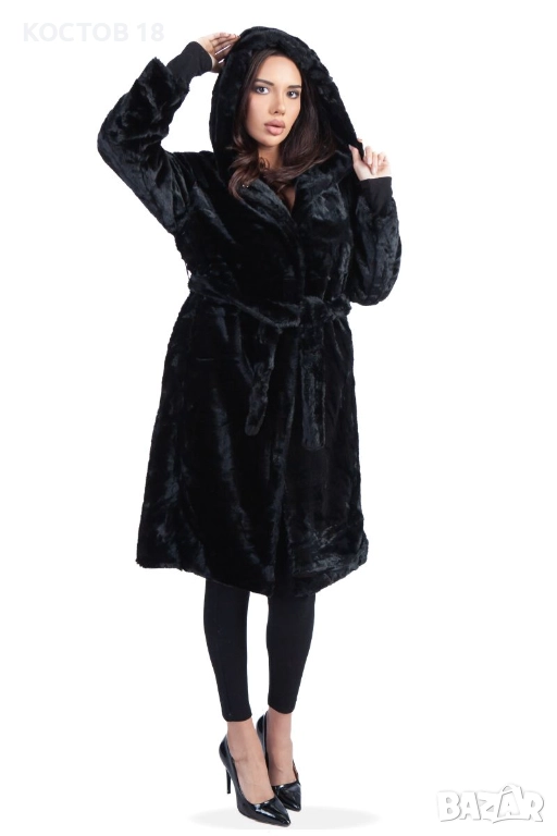 Елегантно дамско зимно палто в стилен цвят. Моделът е с колан на талията и удобна качулка, осигуряваща комфорт и топлина през студените дни. Изработено от висококачествена мека материя, която изглежда луксозно и се усеща приятно при носене. Подходящо както за ежедневието, така и за специални поводи.