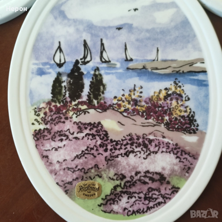 Винтидж комплект от 3 броя пана за стена със скандинавски пейзаж идеални за декорация в стил сканди / винтидж . Автор CARLTON ( 1970 - 80 г.), творчески псевдоним на шведския художник Carl - Anton Axelsson (род 1934г.), известен с рисунките си, често придружени от поетични стихове. Производител - Rorstrand - една от най старите и престижни скандинавски порцеланови фабрики, основана през 1726 год. Всяко пано от тази серия е уникално, тъй като е ръчно декорирано и подписано от един от най - големите майстори на шведската керамика. Размери - 21/16 см. Изпращам по Еконт с 10% отстъпка от транспортната доставка