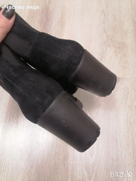 38н.Велур дамски боти, стелка 25 см., ток 8 см. → Обява 52500847
