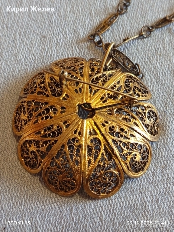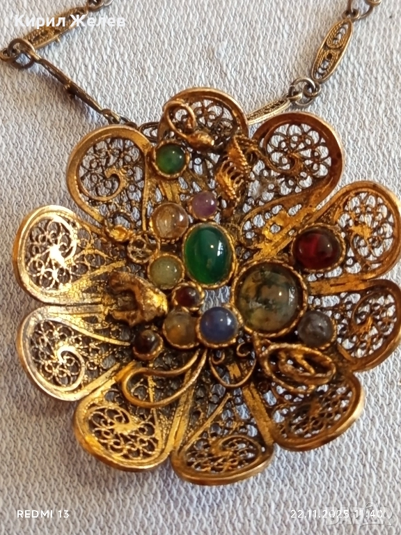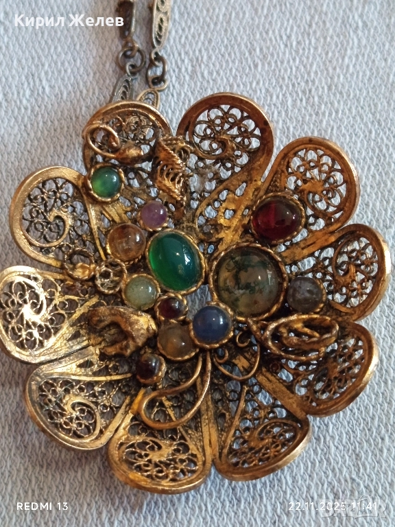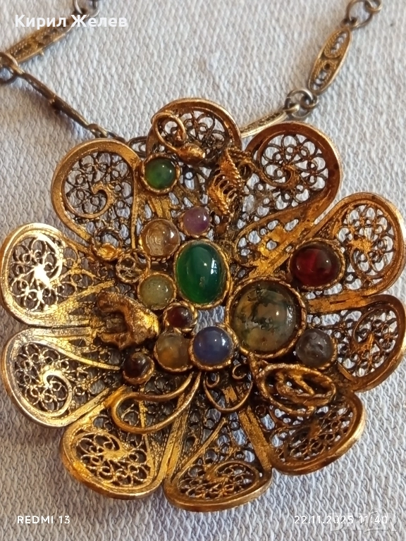 ВИНТИДЖ ФИЛИГРАННО КОЛИЕ ЦВЕТЕ с ЦВЕТНИ КАМЪНИ АХАТ УНИКАТ 34796