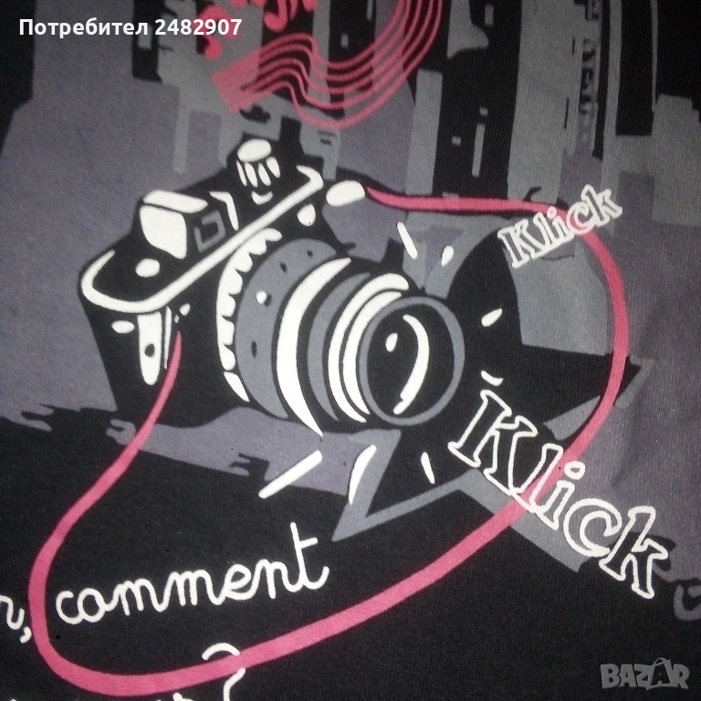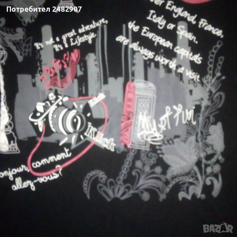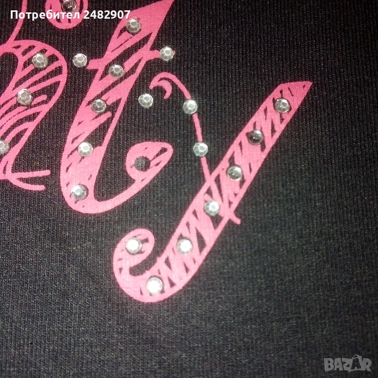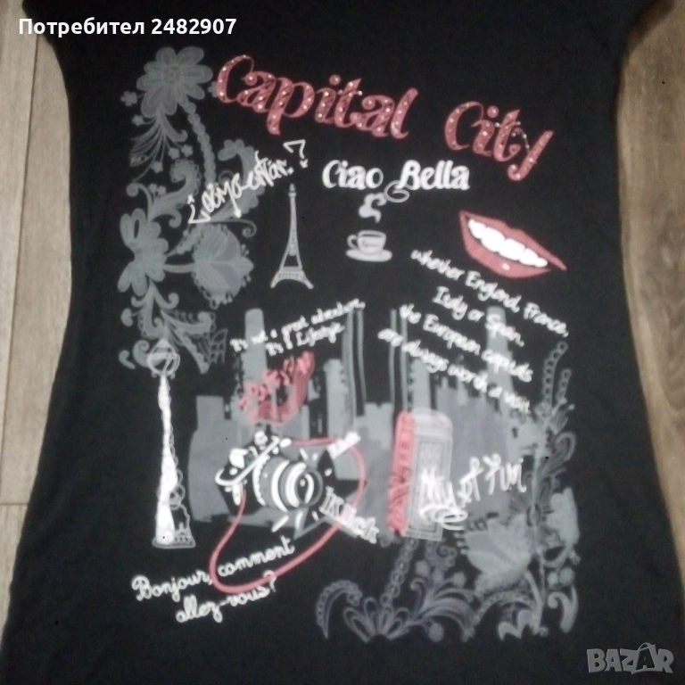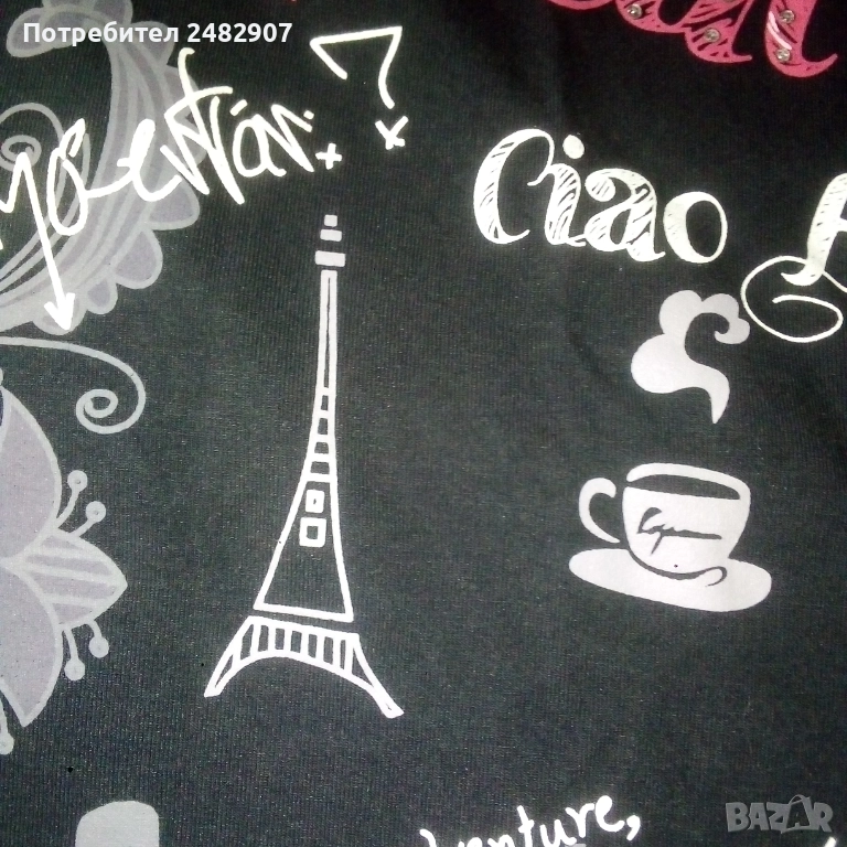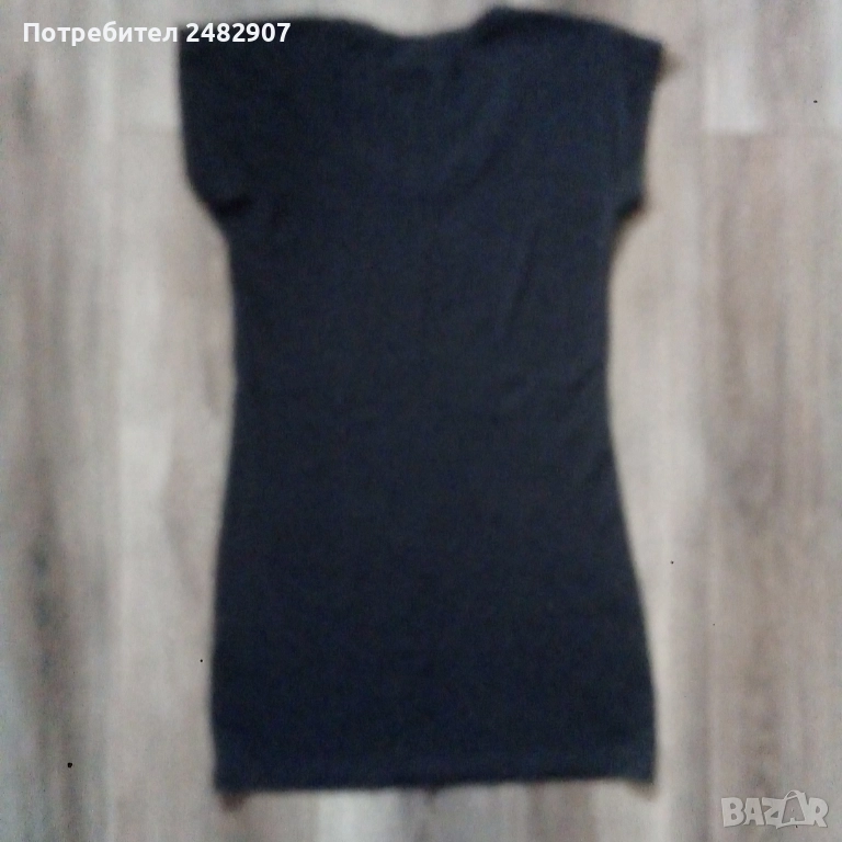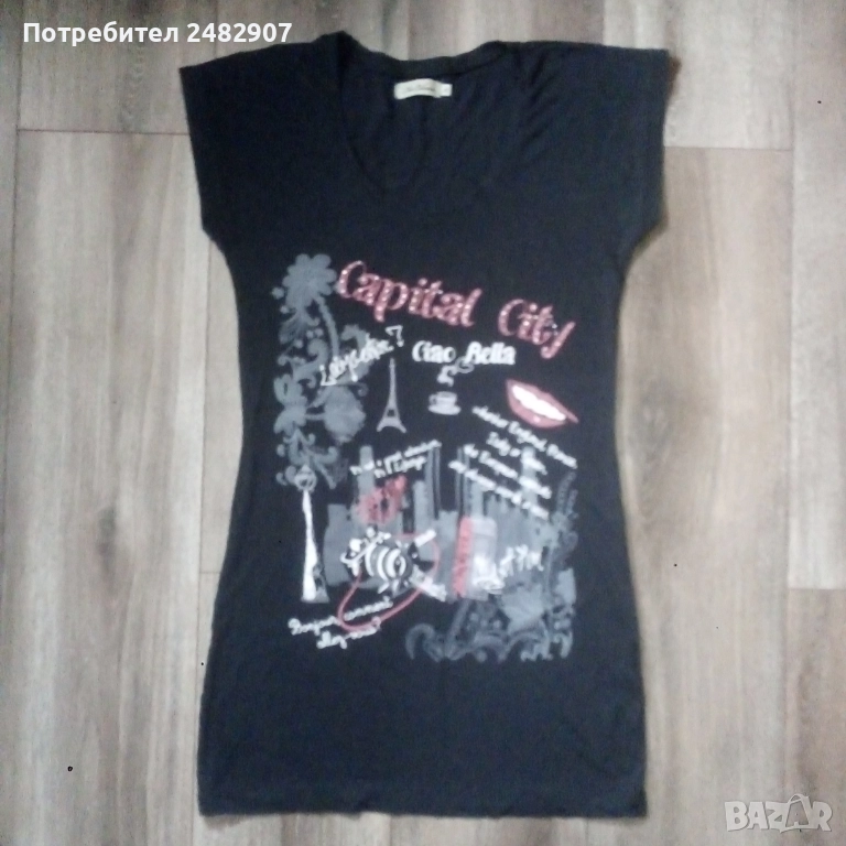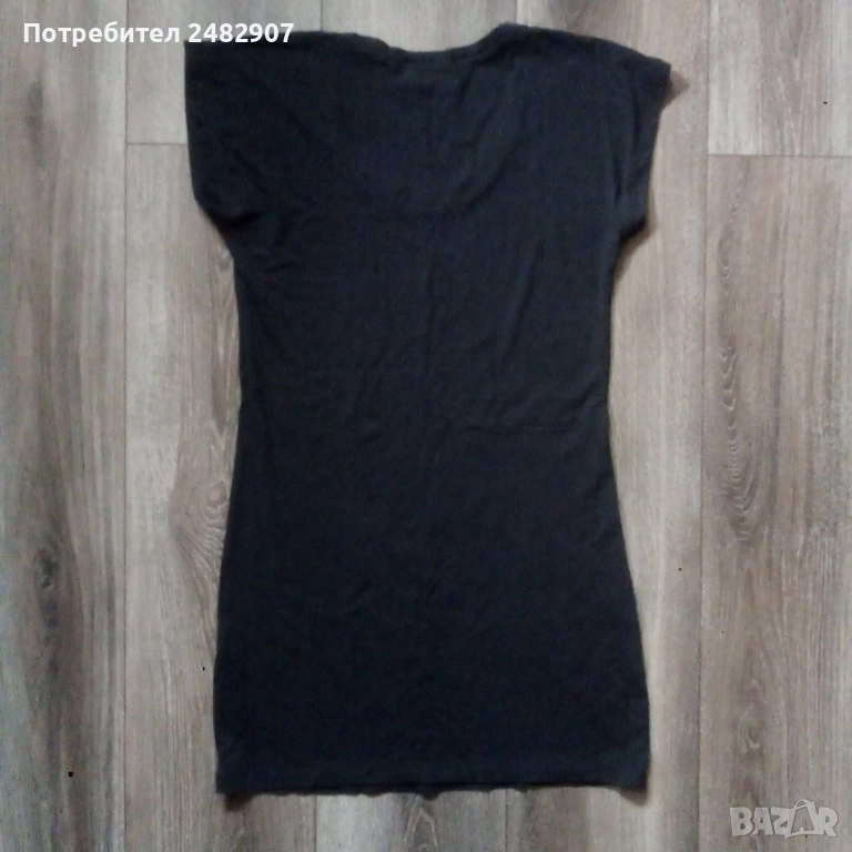 Тъмно сива дамска туника с щампа и малки блестящи камъчета, размер 36. Съдържа 95 % вискоза и 5 % еластан. Ширина в раменете - 50 см, ширина под мишниците - 41 см, ширина в долната част - 45 см, дължина от рамото до долу - 80 см, ширина на ръкава в долната част - 18 см. Много запазена, почти не е използвана, без забележки.