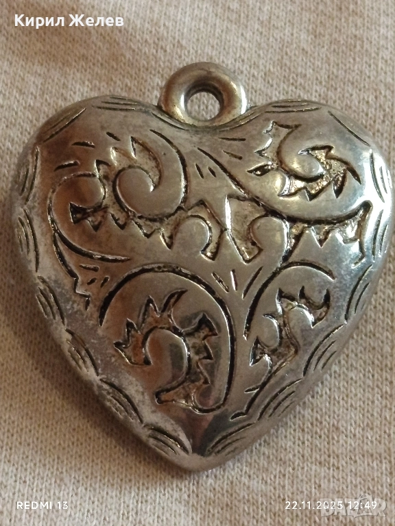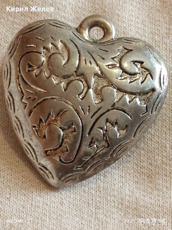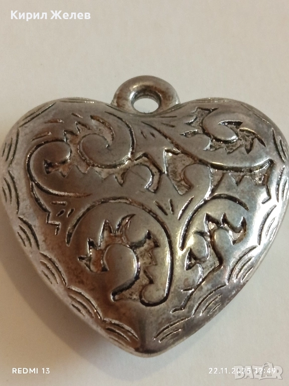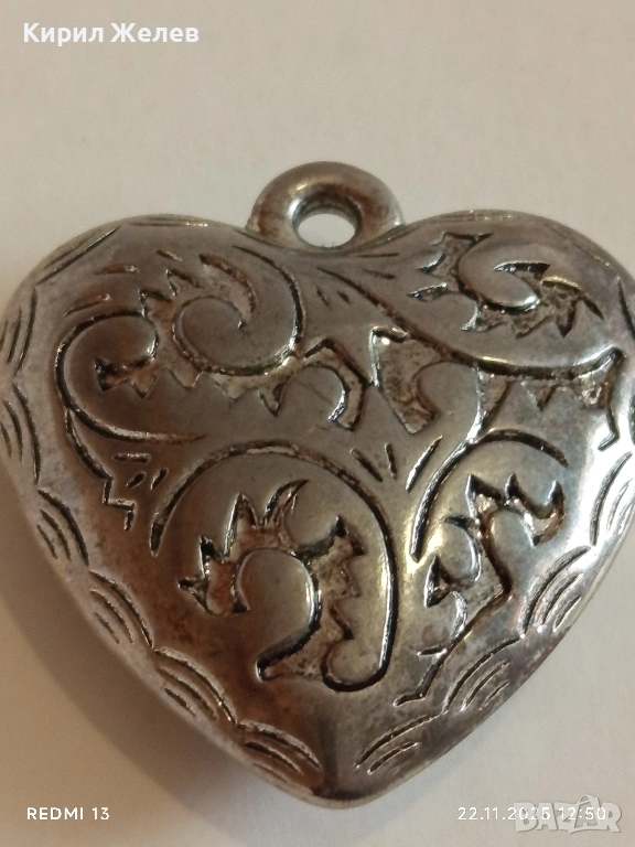 ПОСРЕБРЕН РОМАНТИЧЕН АЖУРЕН АРТ НУВО СТИЛ МЕДАЛЬОН СЪРЦЕ 19486