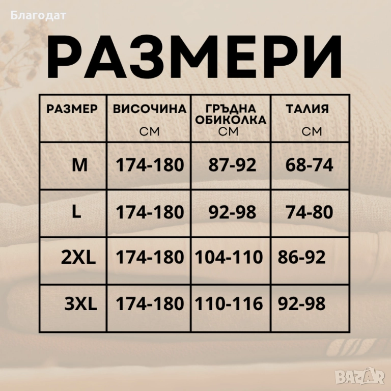 XXL (дължина 86 см, гръд 62 см, ръкав 87 см),
