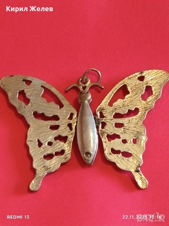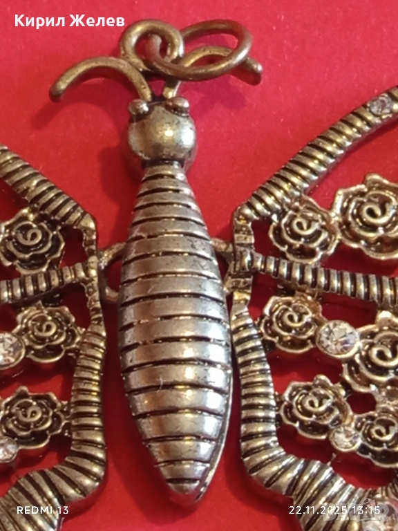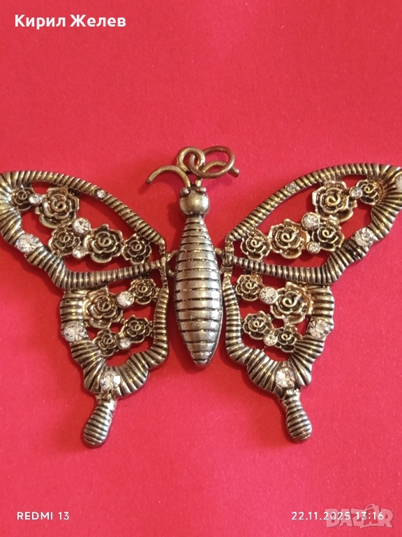 МЕДАЛЬОН с ФОРМА на ПЕПЕРУДА 🦋 в РЕТРО СТИЛ УКРАСЕН с МАЛКИ КРИСТАЛИ 51247