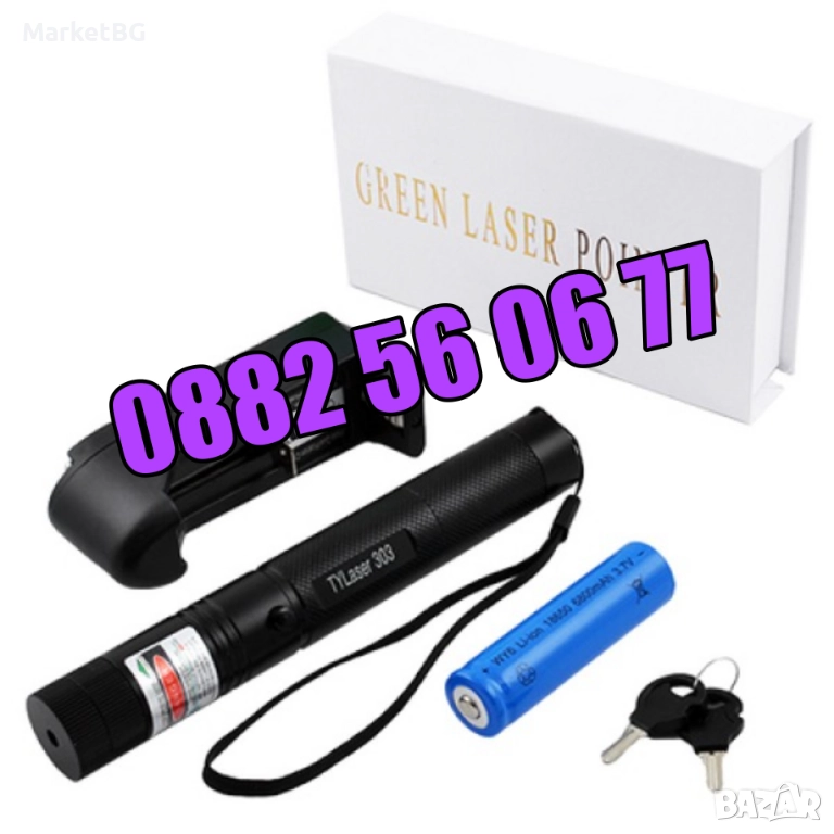 Лазер пойнтер с проекция до 10000 метра, мощен зелен лазер → Обява 52501973