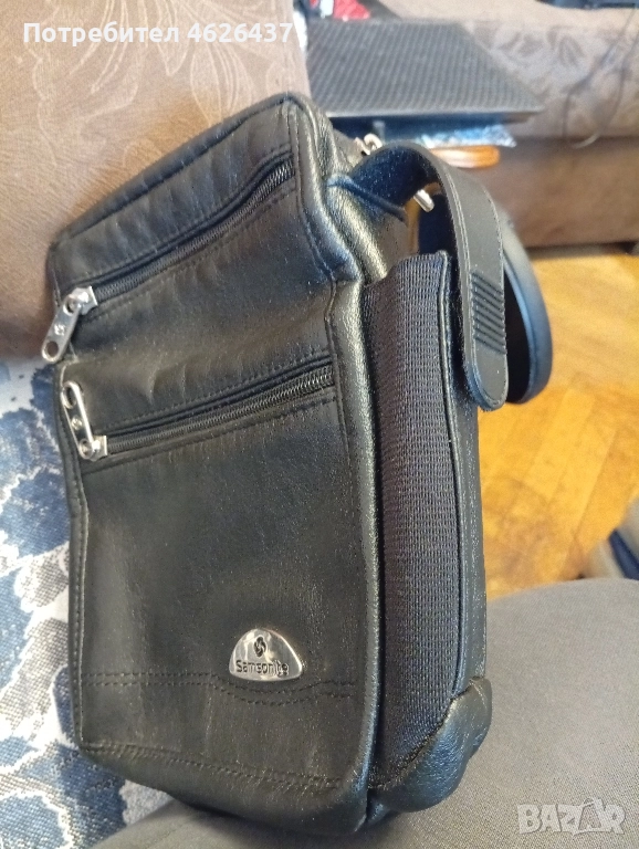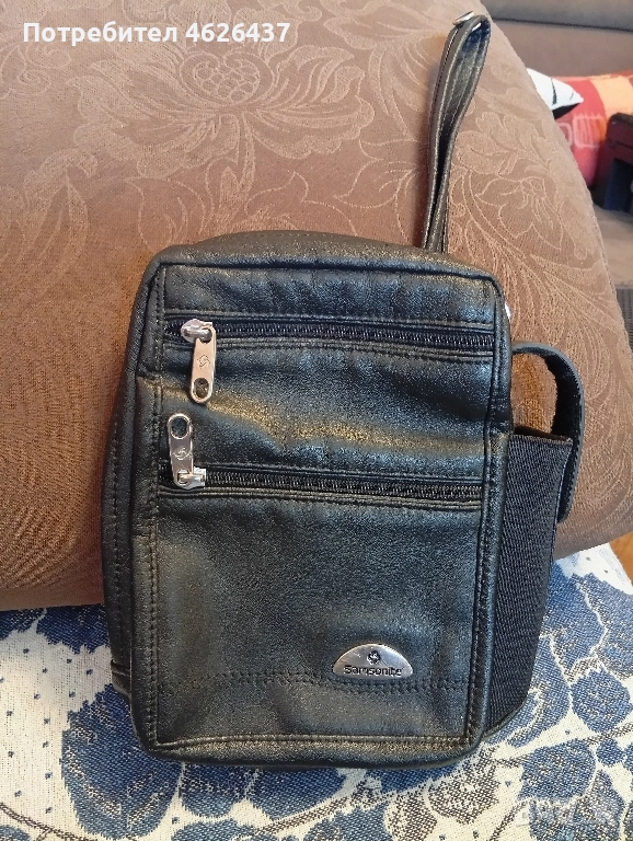 снимки 4,5,6- оригинална,много запазена, кожена чантичка Samsonite с метално лого, размери 22/15 см - 30 лв