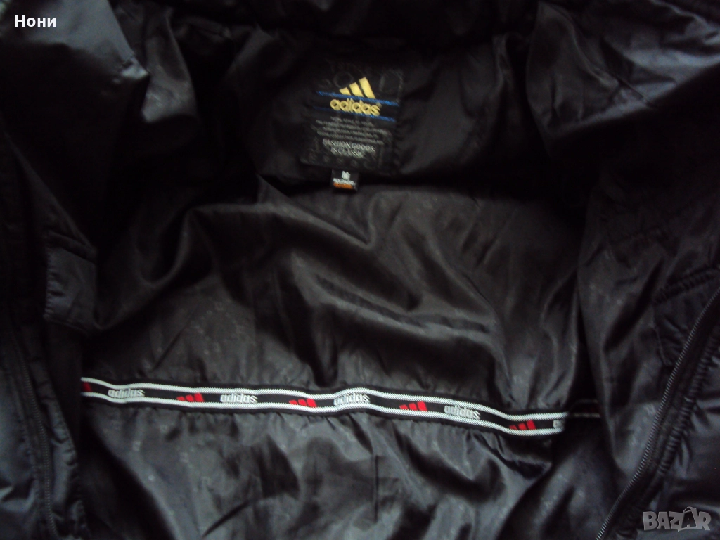 Юношеско топло пухено яке на ADIDAS .Оригинално. Ръст М. Обличано наистина до пъти. Размери : Дължина 63 см. Дължина на ръкава 74 см. От подмишница до подмишница 54 см. Обличано до пъти наистина . Със сваляща се качулка. При интерес на лично! Състояние НОВО!