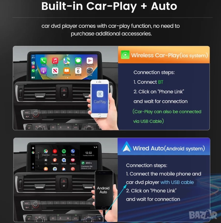 2GB+32GB цена 499.90лв, 4-ядрен процесор, Android Auto, CarPlay, Wi-Fi, RDS