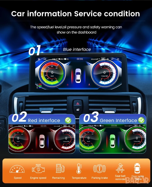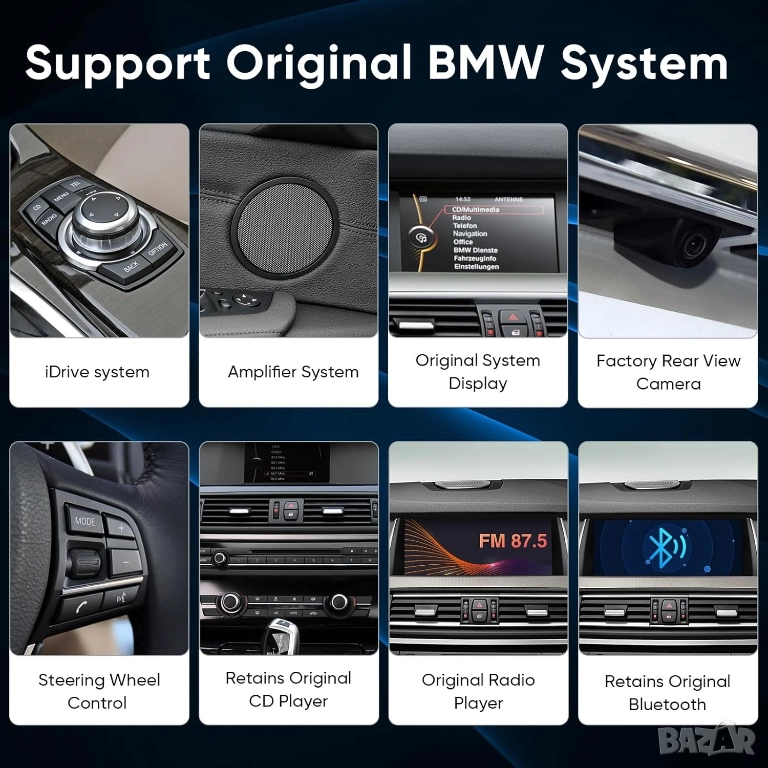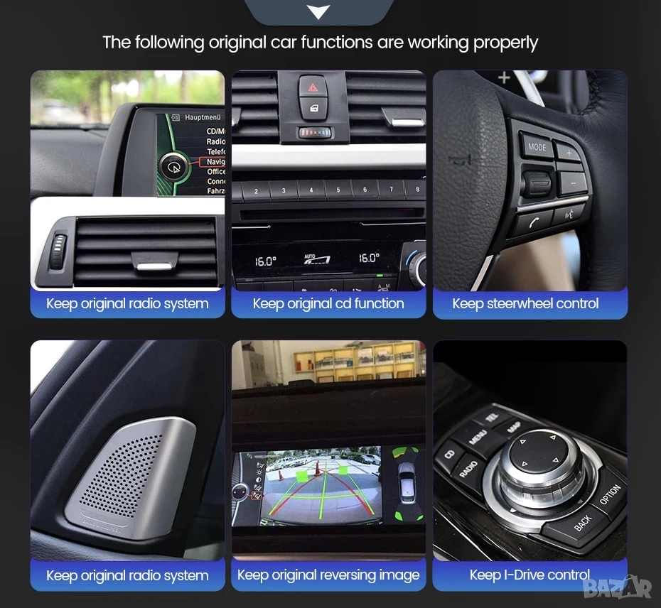 Това не е просто екран, а е мултимедия със система на Android, също така мултимедията визуализира и всички оригинални функции от оригиналната система на автомобила, които продължават да работят но вече на много по добър OLED голям екран. Функционира също оригинална камера, ако автомобила има такава и оригиналната аудио системата на автомобила.