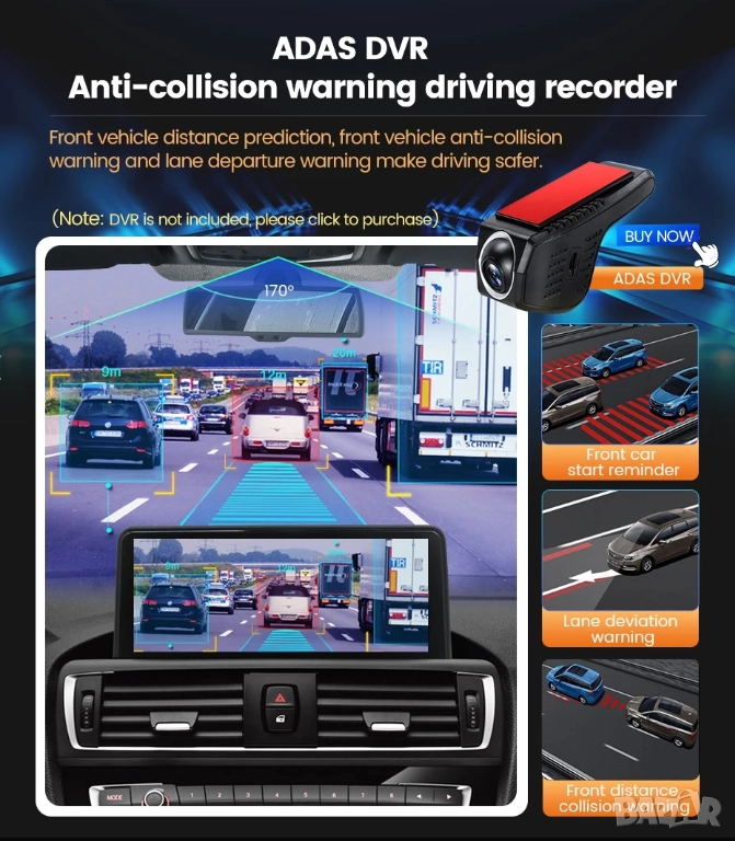 Опция за свързване на задна и предна камера с висока резолюция и широк ъгъл на видимост