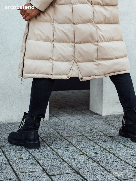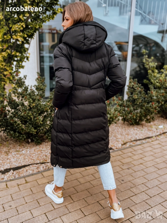 Това по-дълго ватирано яке е идеално за жени, които ценят стила и комфорта. Разполага с фиксирана качулка, два джоба с цип и кройка, която визуално изтънява фигурата. То е невероятно красиво, топло и осигурява максимален комфорт.