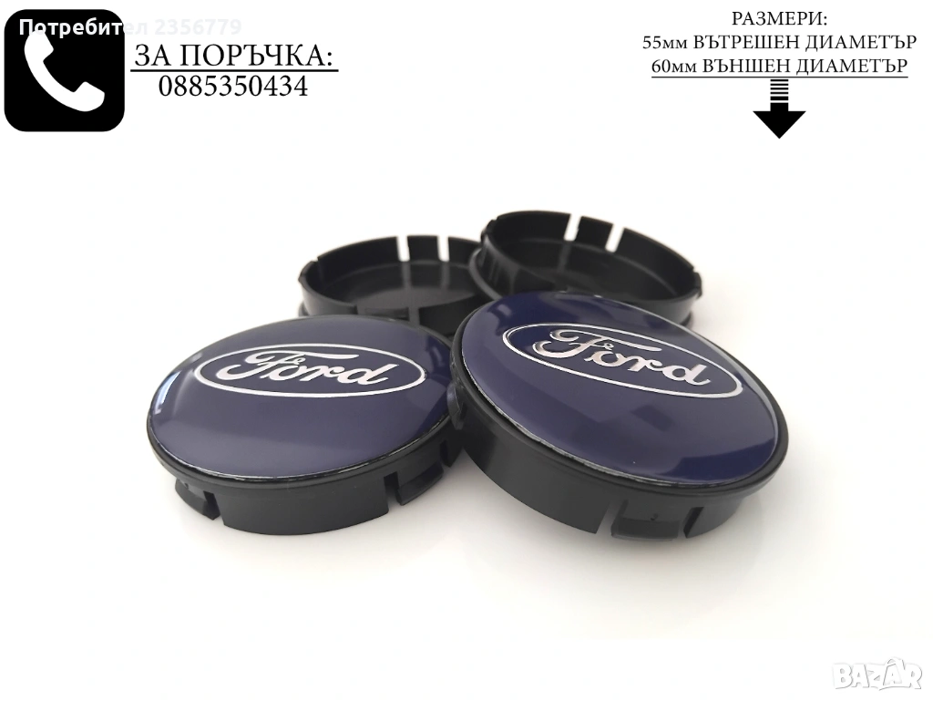 Капачки за джанти Форд сини 52/55 → Обява 52502334