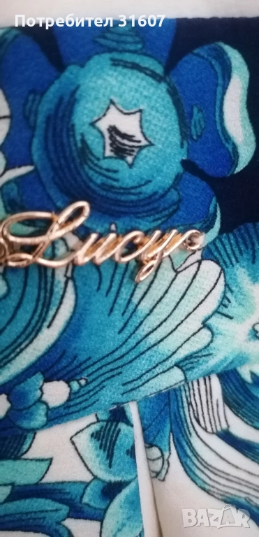 Красива рокля на марката LUCY, в прекрасни нюанси, с нежна брошка на деколтето. Обличана еднократно по повод. Размер М/S. Отлично състояние.
