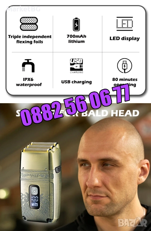 Безжична самобръсначка VGR 335, електрическа самобръсначка, водоустойчива