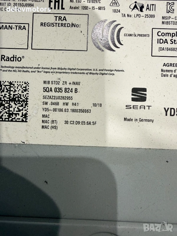5QA035824B CD радио плеър от Seat Arona 1.0 TSI, двигател CHZ, 95 кс., 5 ск., 71 000 км., 2019 г., евро 6B, Сеат Арона 1.0 ТСИ, engine CHZ, 5 sp., 2019 в автоморга Delev Motors, между с. Каменар и с. Куманово гр. Варна.