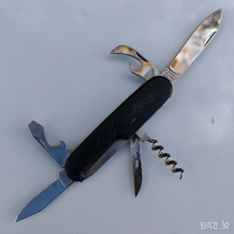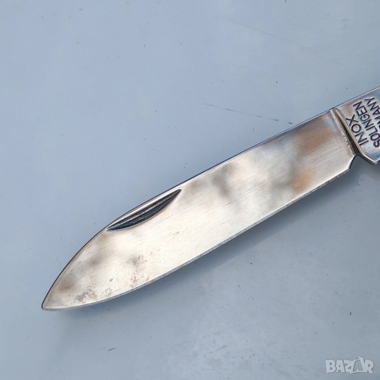 Джобно ножче Solingen, Германия много стегнато, без лувтове, острието не е заточвано, отлично състояние. Забележка на шилото, малко ръжда. Еконт, Спиди, лично предаване. Телефон за връзка 0885776829.
