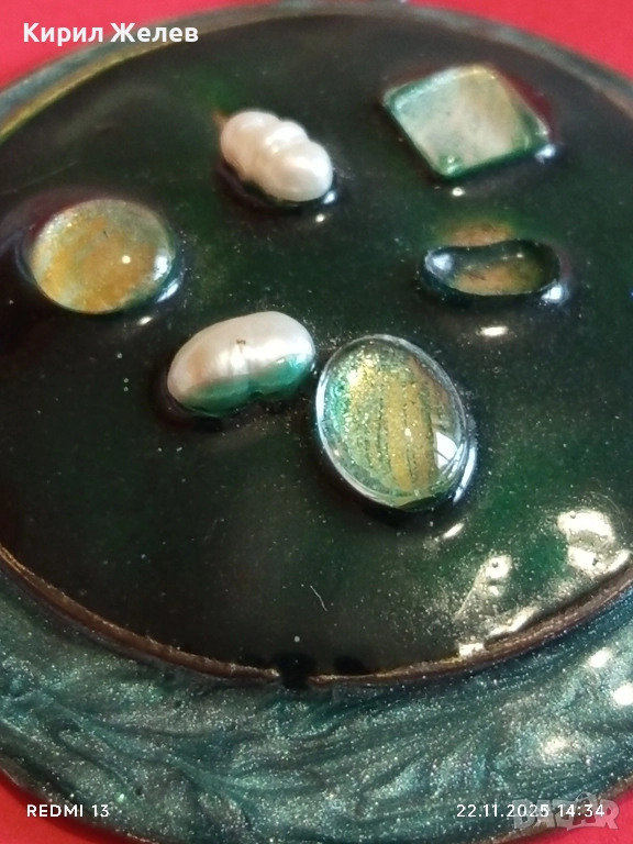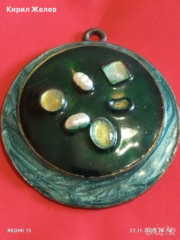 МЕДАЛЬОН с ЕМАЙЛ УКРАСЕН с КАМЪНИ и СЕДЕФ с ГЛАНЦОВО ПОКРИТИЕ 51396