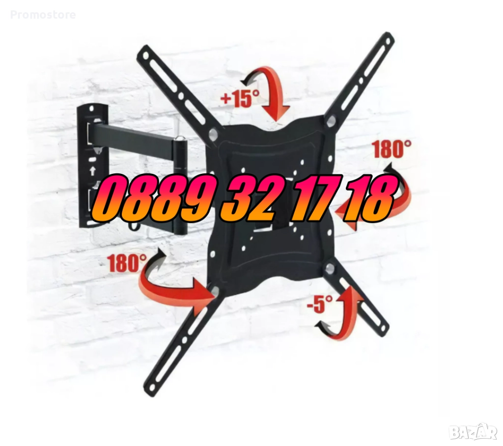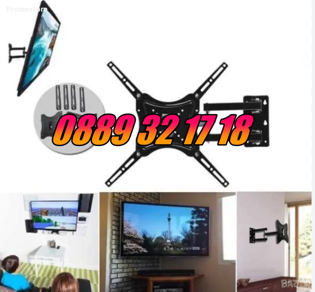 Стойка за телевизор с чупещо рамо за поставяне на стена.