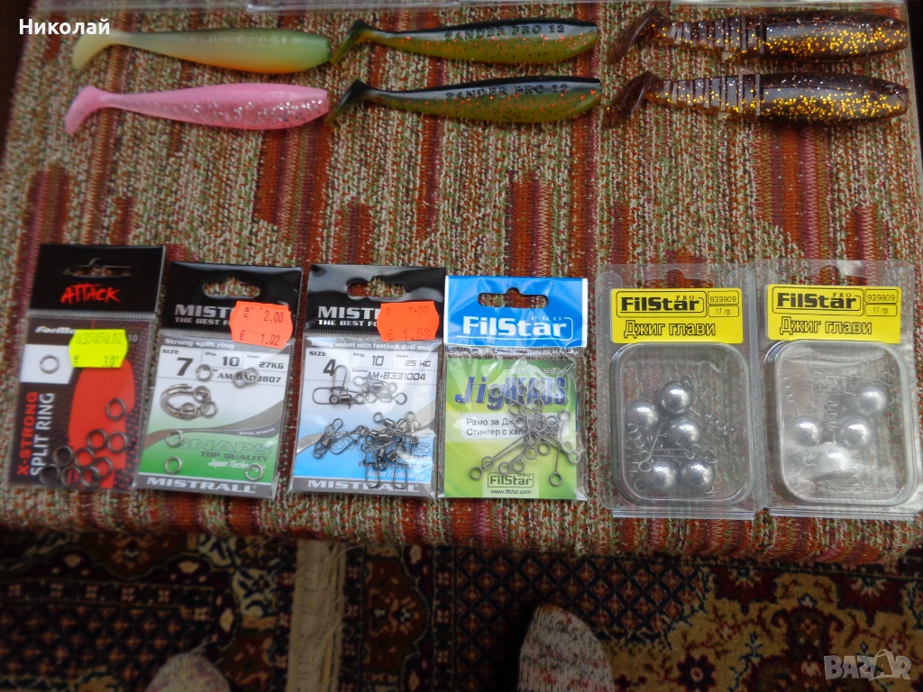 Джиг глави с прожина,и няколко пакета карабинки и халки(ковани са),поне 25 лева.