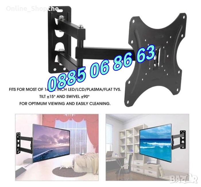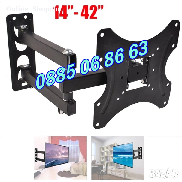 Въртяща стойка за телевизор за стена 14-42", подвижна стойка до 35кг, снимка 1 - Стойки, 3D очила, аксесоари - 52502988 Въртяща стойка за телевизор за стена 14-42", подвижна стойка до 35кг, снимка 2 - Стойки, 3D очила, аксесоари - 52502988 Въртяща стойка за телевизор за стена 14-42", подвижна стойка до 35кг, снимка 3 - Стойки, 3D очила, аксесоари - 52502988 Въртяща стойка за телевизор за стена 14-42", подвижна стойка до 35кг, снимка 4 - Стойки, 3D очила, аксесоари - 52502988 Въртяща стойка за телевизор за стена 14-42", подвижна стойка до 35кг, снимка 5 - Стойки, 3D очила, аксесоари - 52502988 Въртяща стойка за телевизор за стена 14-42", подвижна стойка до 35кг, снимка 6 - Стойки, 3D очила, аксесоари - 52502988 1/6