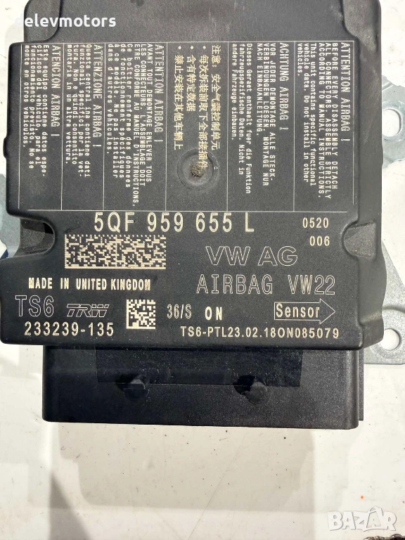 5QF959655L Airbag централа за ресетване от Seat Arona 1.0 TSI, двигател CHZ, 95 кс., 5 ск., 71 000 км., 2019 г., евро 6B, Сеат Арона 1.0 ТСИ, engine CHZ, 5 sp., 2019 в автоморга Delev Motors, между с. Каменар и с. Куманово гр. Варна.