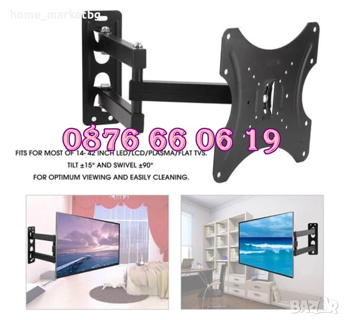 Въртяща стойка за телевизор за стена 14-42", подвижна стойка до 35кг, снимка 1 - Стойки, 3D очила, аксесоари - 52503010 Въртяща стойка за телевизор за стена 14-42", подвижна стойка до 35кг, снимка 2 - Стойки, 3D очила, аксесоари - 52503010 Въртяща стойка за телевизор за стена 14-42", подвижна стойка до 35кг, снимка 3 - Стойки, 3D очила, аксесоари - 52503010 Въртяща стойка за телевизор за стена 14-42", подвижна стойка до 35кг, снимка 4 - Стойки, 3D очила, аксесоари - 52503010 Въртяща стойка за телевизор за стена 14-42", подвижна стойка до 35кг, снимка 5 - Стойки, 3D очила, аксесоари - 52503010 Въртяща стойка за телевизор за стена 14-42", подвижна стойка до 35кг, снимка 6 - Стойки, 3D очила, аксесоари - 52503010 1/6