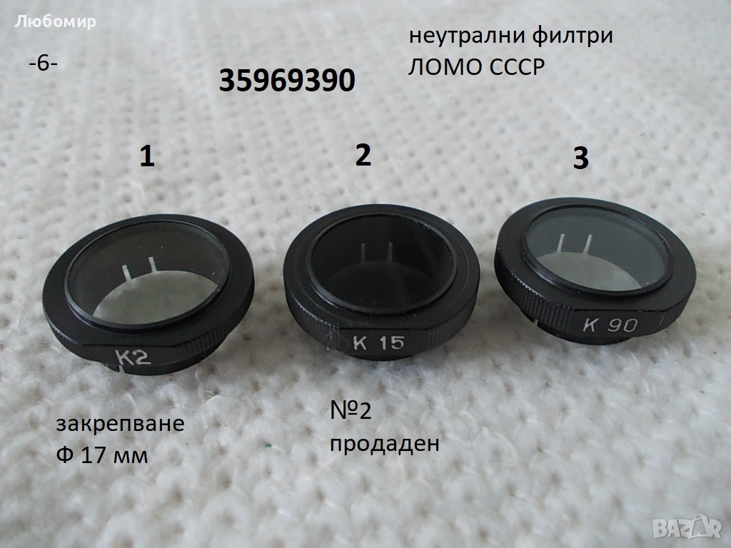 15. Неутрални филтри ЛОМО - неизползвано - 3 бр. х 9 лв.