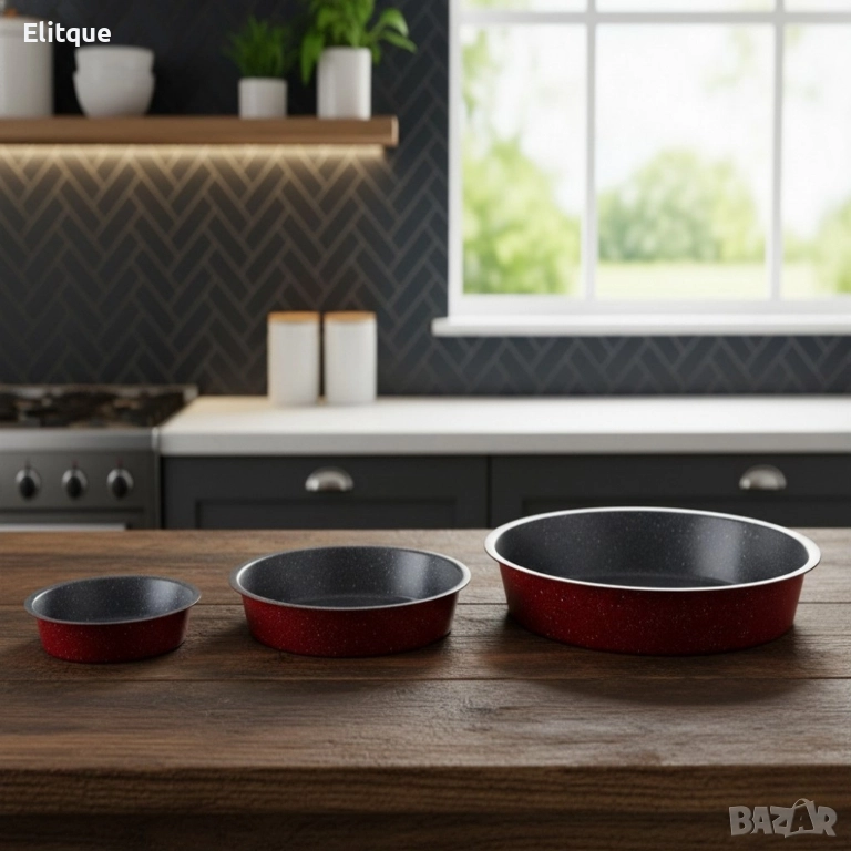 Всеки загорял сладкиш, залепнала лазаня или разпадната мусака развалят настроението в кухнята. Вместо удоволствие идват досада и търкане. Тези кръгли тави с емайлно и мраморно покритие решават проблема – заменят старите съдове и осигуряват равномерно печене, лесно отделяне на храната и бързо почистване. Незалепващото покритие без PFOA прави готвенето по-здравословно, а емайлната повърхност дава здравина и дълъг живот. Леките, удобни и стилни тави са подходящи за пайове, сладкиши, месо и ежедневни ястия. Комплектът включва 24×4.5 см, 28×4.5 см и 32×4.5 см. Подходящи за фурна и съдомиялна, пестят енергия и време. Добави ги към кухнята си и усети разликата още при следващото печене.