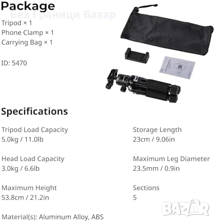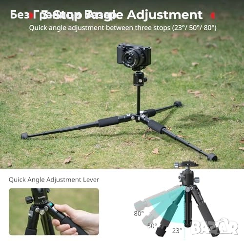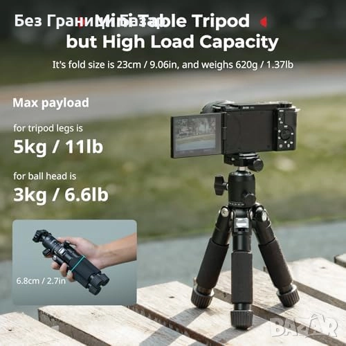 Компактен алуминиев мини статив с височина до 53.8 см – идеален за снимане на маса или пътуване