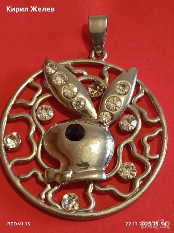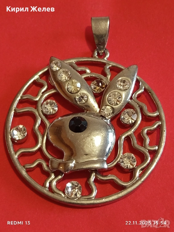 КРАСИВ ПОСРЕБРЕН МЕДАЛЬОН с ИНКРУСТИРАНИ ЦИРКОНИЙ с ЛОГОТО на ПЛЕЙБОЙ 26825