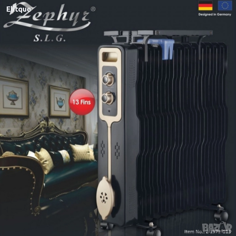 Мощност : 2500W; Захранване: 220-240V~, 50Hz; Размери: 14 см (дълбочина) x 61 см (ширина) x 65 см (височина); Защита против прегряване: Да, автоматично изключване при нужда; Придвижване: Колела за лесно местене; Допълнителни функции: Поставка за сушене на дрехи, овлажнител за въздух; Гаранция: 12 месеца.