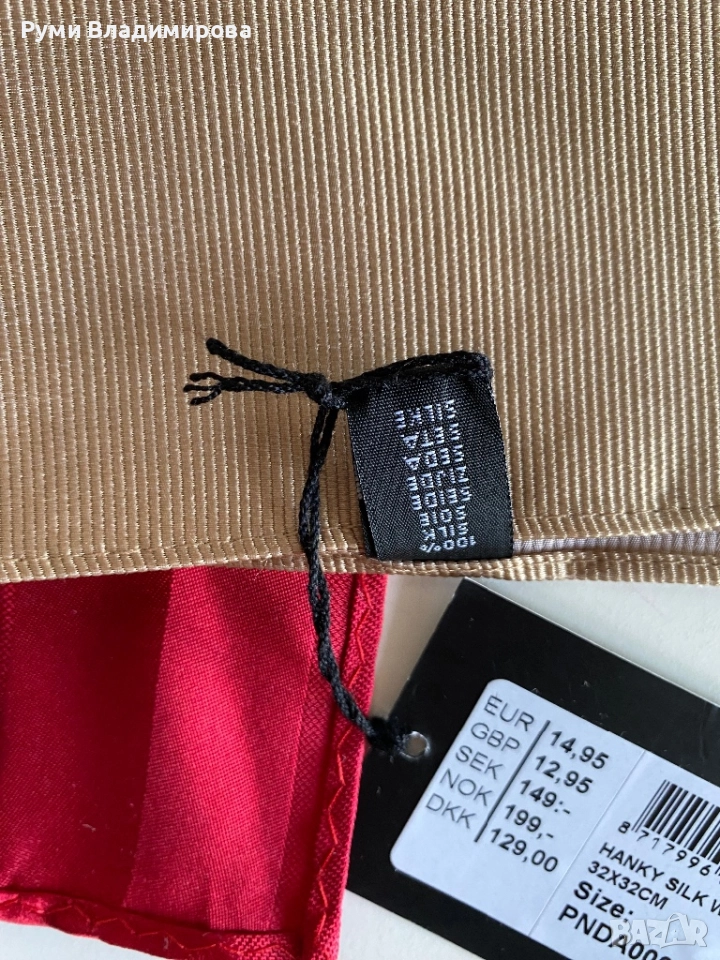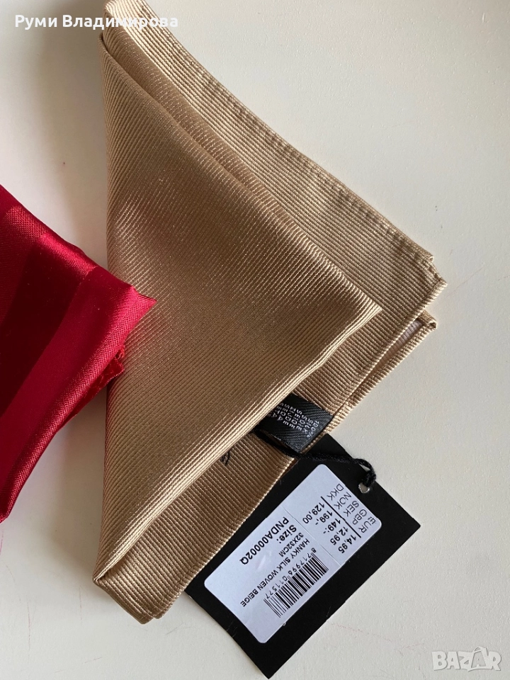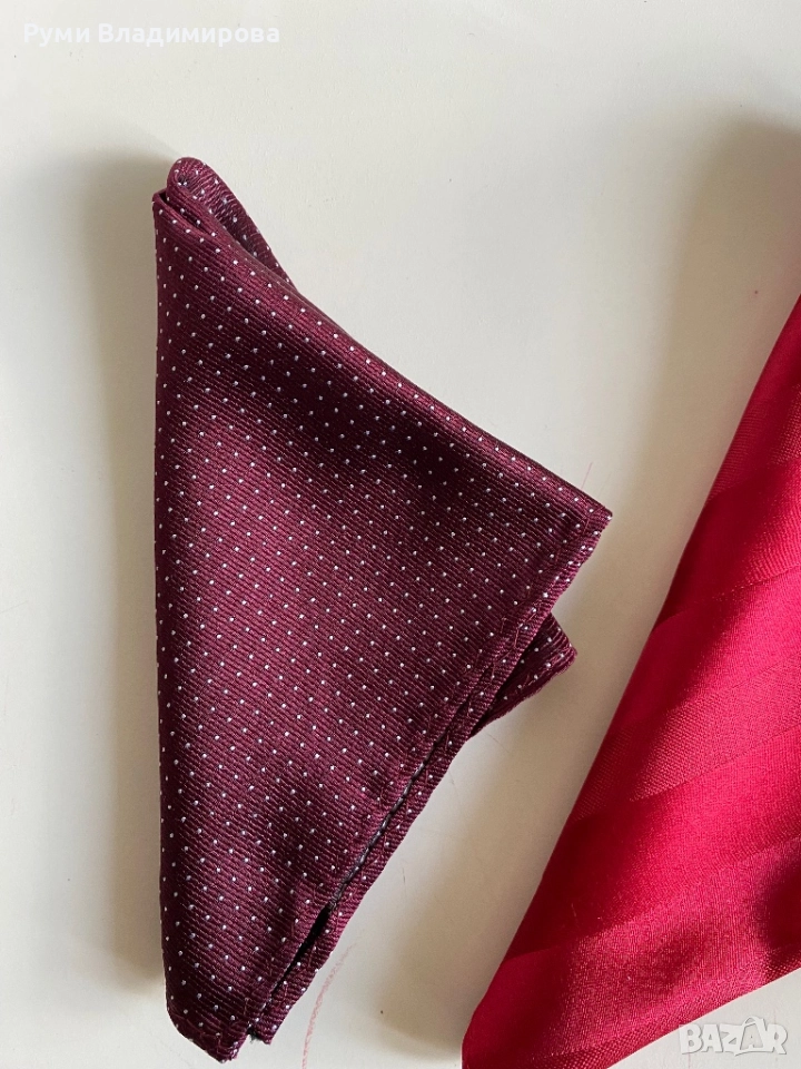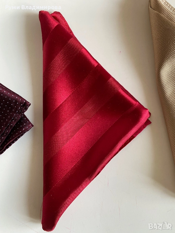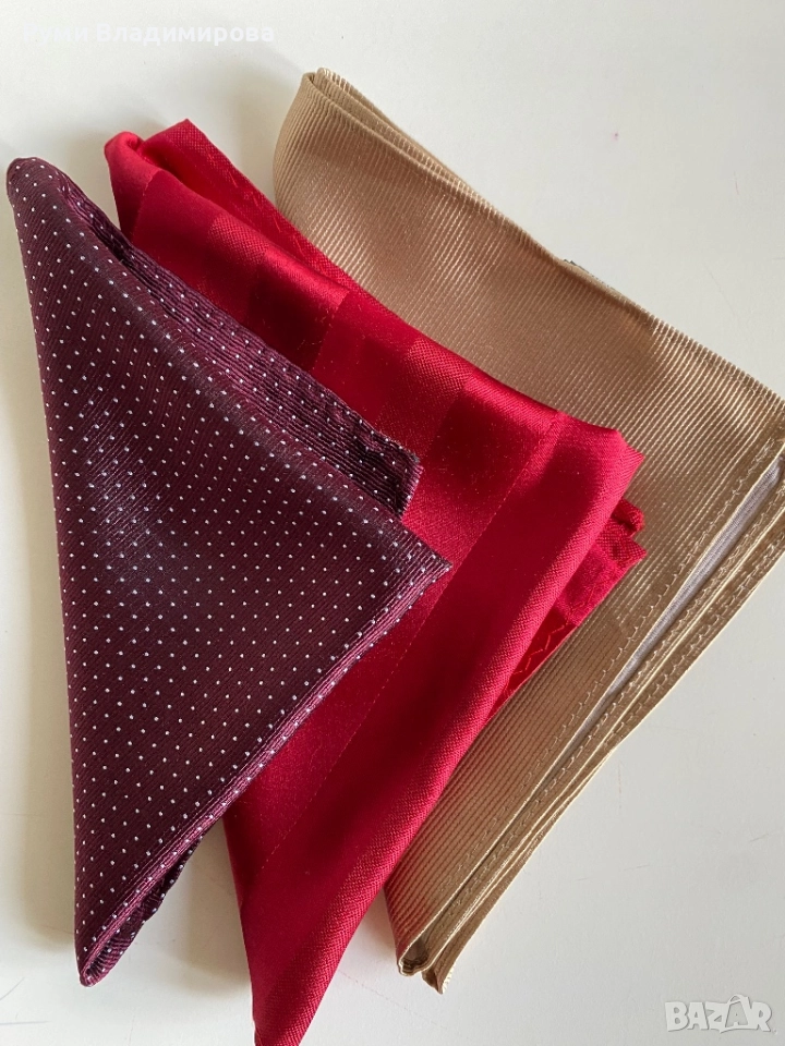 Кърпичка за сако от 100 % коприна, всяка по 8€, бежова, червена и бордо и цветна, нови, доставка с Еконт, 20€ за трите налични.