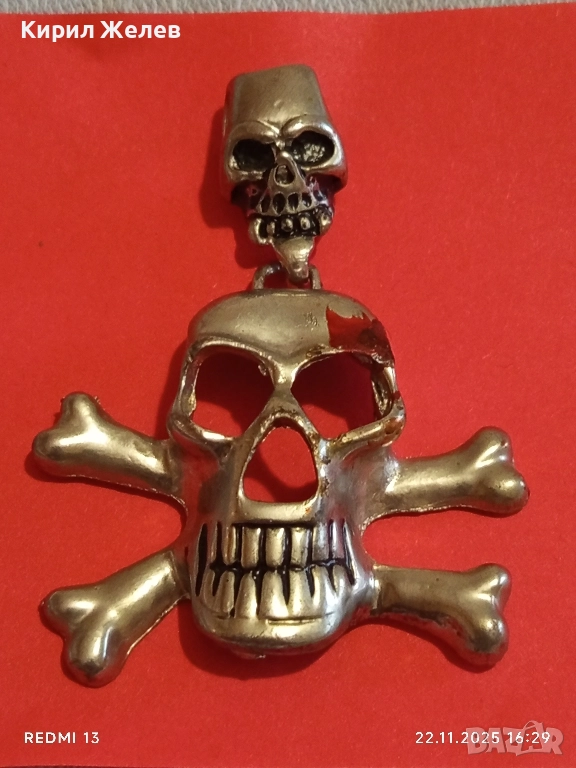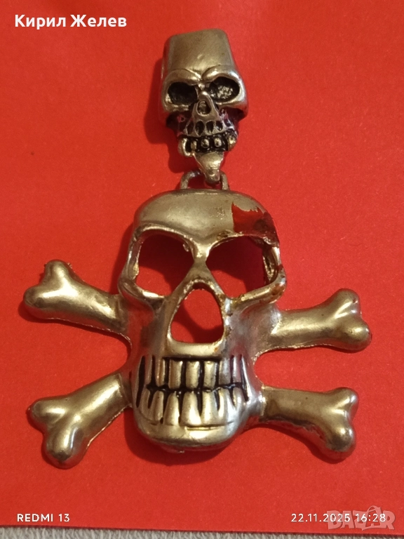 РОКЕРСКИ МЕДАЛЬОН ЧЕРЕП и КРЪСТОСАНИ КОСТИ 52151
