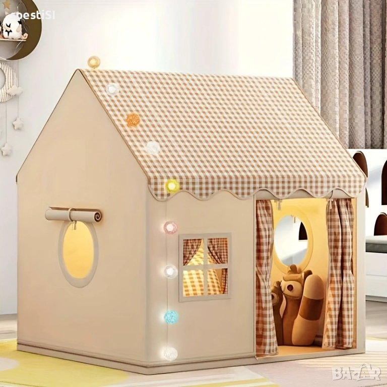 Търсите начин да стимулирате въображението на вашето дете и едновременно с това да добавите стилен акцент в интериора? Тази детска текстилна палатка тип къщичка е перфектното решение. За разлика от стандартните пластмасови играчки, тя създава усещане за топлина и уют.