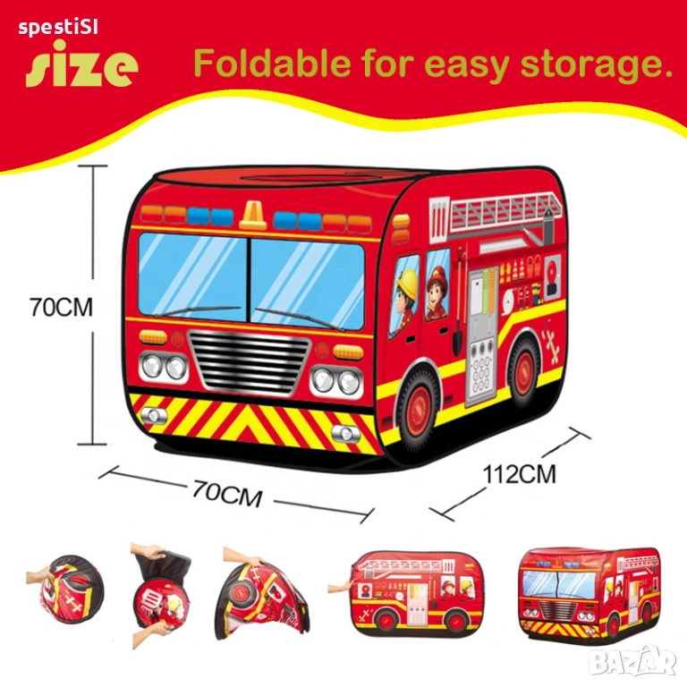 Мечтае ли вашето дете да стане пожарникар? Превърнете детската стая в пожарна служба с нашата детска палатка "Пожарна Кола". Тя е перфектният подарък за всяко енергично дете, което обича превозните средства и ролевите игри.