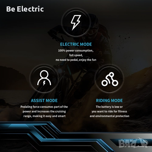Моделът има 3 режима на използване като: подпомагане, само на електромотор и като обикновено колело.