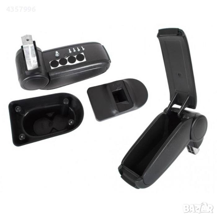 В комплекта са включени видии и болт за сглобяването на подлакътника с пластмасовата поставка, няма елементи за закрепването към централната конзола.