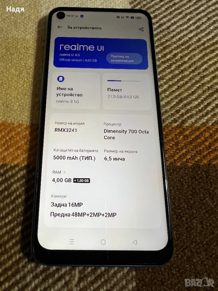 realme 8 -5G,64GB/4 GB,Dual SIM,Blue, снимка 1 - Телефони с две сим карти - 52505404 realme 8 -5G,64GB/4 GB,Dual SIM,Blue, снимка 2 - Телефони с две сим карти - 52505404 realme 8 -5G,64GB/4 GB,Dual SIM,Blue, снимка 3 - Телефони с две сим карти - 52505404 realme 8 -5G,64GB/4 GB,Dual SIM,Blue, снимка 4 - Телефони с две сим карти - 52505404 realme 8 -5G,64GB/4 GB,Dual SIM,Blue, снимка 5 - Телефони с две сим карти - 52505404 realme 8 -5G,64GB/4 GB,Dual SIM,Blue, снимка 6 - Телефони с две сим карти - 52505404 1/6