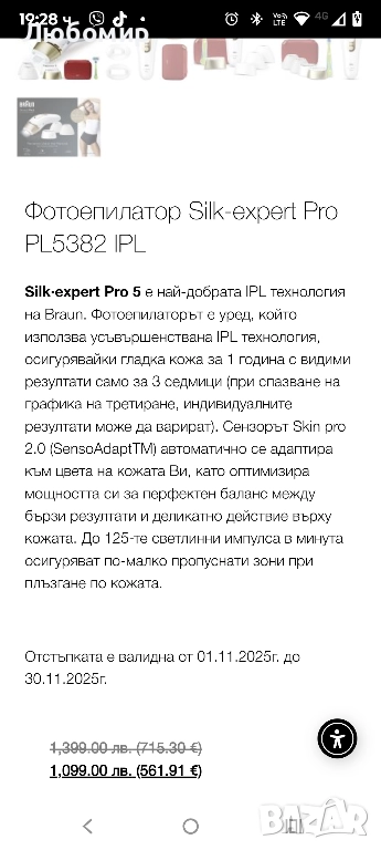 Braun IPL Silk·expert Pro 5 Домашна епилация с чанта за съхранение,