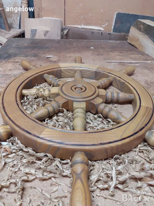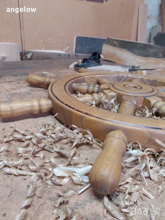 Този модел е мостра - при интерес изработвам кормилото по избор на клиента: вид дърво, цвят, финиш както и вариант за стенен или таванен монтаж