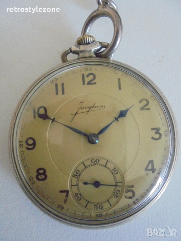 Стар оригинален джобен часовник Junghans, произведен в Германия – истинска колекционерска находка. Марката Junghans е известна със своето високо качество, прецизна механика и класически дизайн. Часовникът е чудесен избор за ценители, колекционери и любители на антикварни предмети.