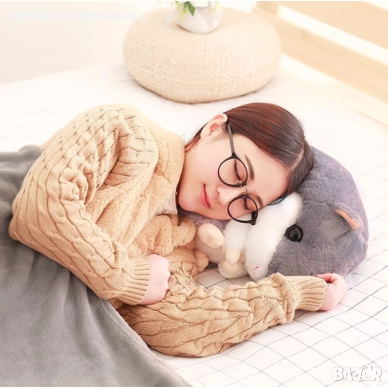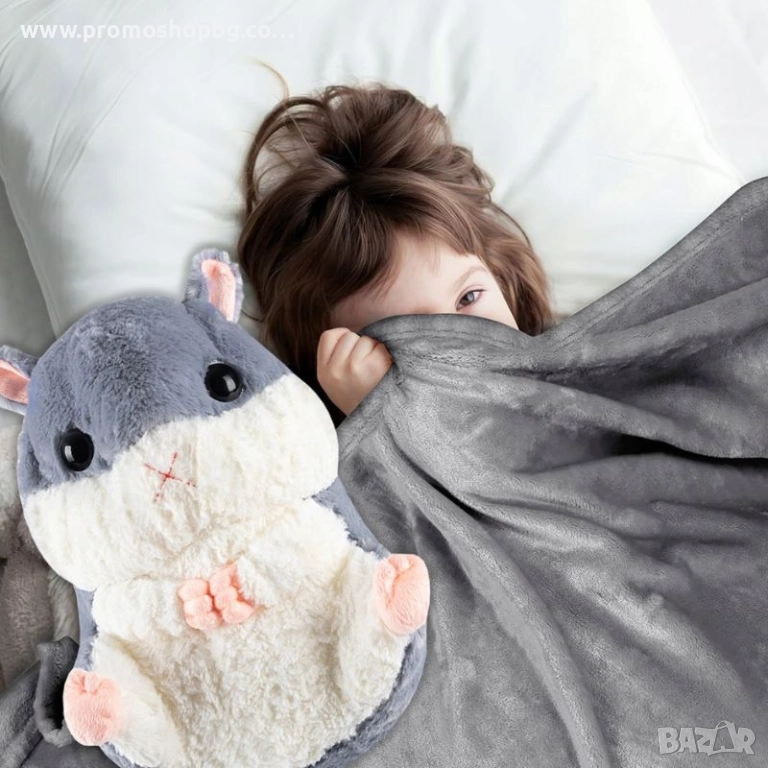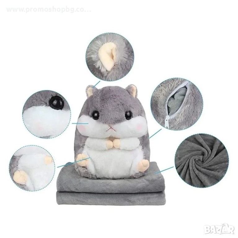 Този очарователен 3-в-1 хамстер е едновременно одеяло, възглавница и плюшена играчка - мек, топъл и винаги готов за гушкане. В коремчето му е скрито одеяло, което може да се разгъне или сгъне за секунди. Той е идеалният спътник за сън, пътуване и игра, давайки на детето ви чувство за сигурност и радост всеки ден.